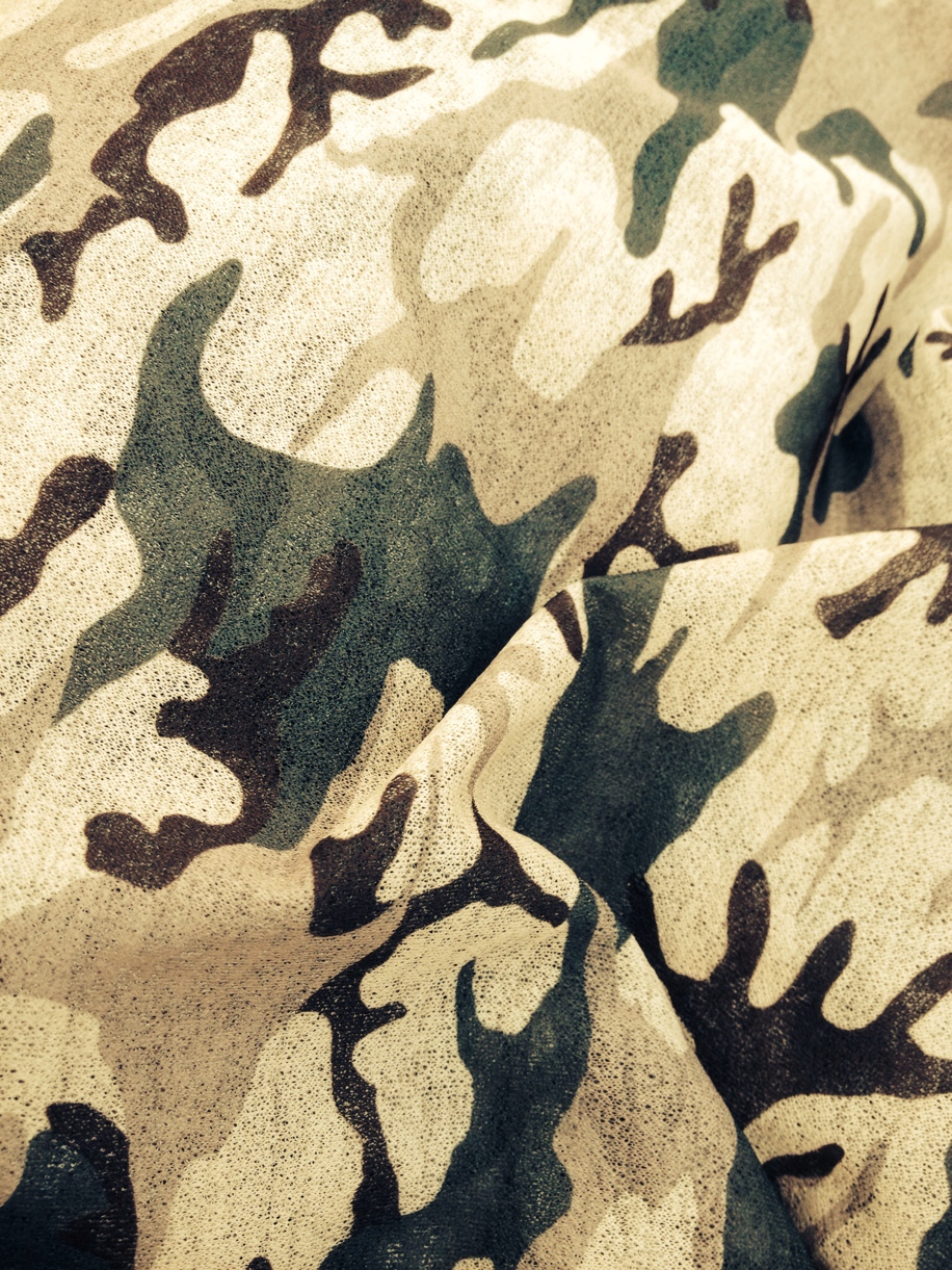 Here’s my arms print semi sheer fabric, it’s not very soft and curled up on the edges when it went any near the iron. No idea what it’s made up of.