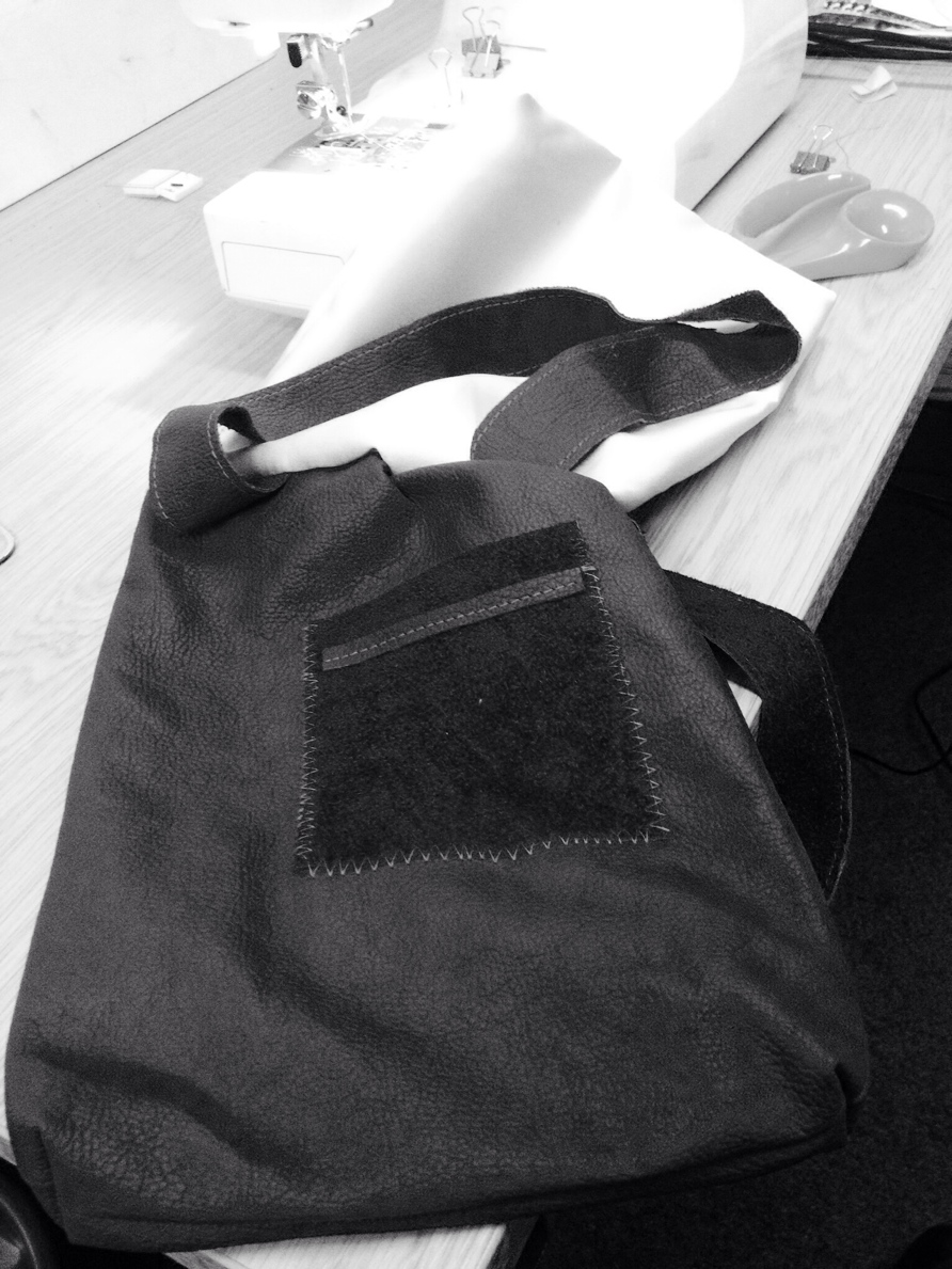 I’d been thinking of making some tote bags, so with the leather I’d previously bought I decided to make a mini one in leather – big enough to hold my sister’s iPad. I used the large piece at the back. It’s chocolate brown but the photo doesn’t show it too well.