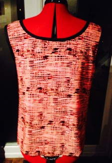 the patterned fabric is a peachy poly, and the black is a crepe.  It looks lovely on, and I’m sure I’ll be wearing this loads.
