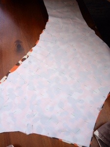 Here’s my main fabric, lovingly attached with lots of hand stitching to the underlining: