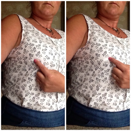 Now I’ve not gone daft, but these photos show where the original dart finished on my first 2 sorbettos (RIGHT) and where i’ve altered it to finish on this pattern (LEFT). I didn’t change anything else for the shortened dart, wasn’t sure if I should, so didn’t bother and it’s turned out ok.