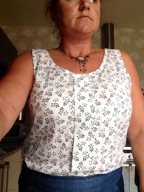 My 2nd Sorbetto was also a refashion.  A man’s shirt that I bought for £4 in a charity shop.  This was a little fiddly fitting the pattern onto the shirt.  I used the button down front and the curved hem.