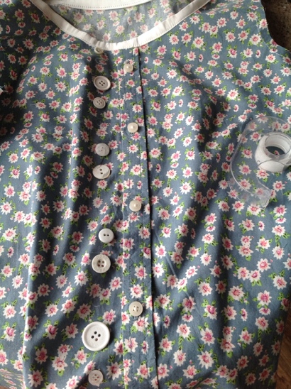 I positioned the buttons then put a strip of cellotape over them so I could keep their positions in the right order. In the end I only sewed 3 extra ones, and stitched down where it gaped at the bust.
