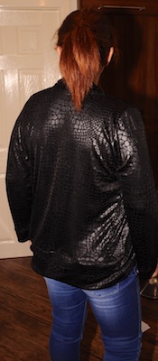 It was a lucky break, not having enough fabric, ‘cos the butterflies are fab! They make the jacket look really expensive – and I love the leather look:)