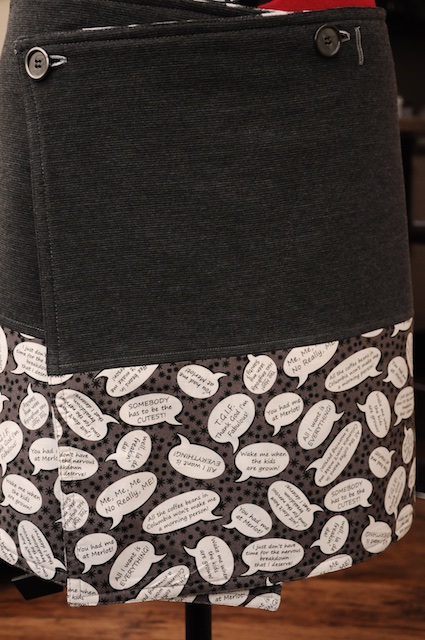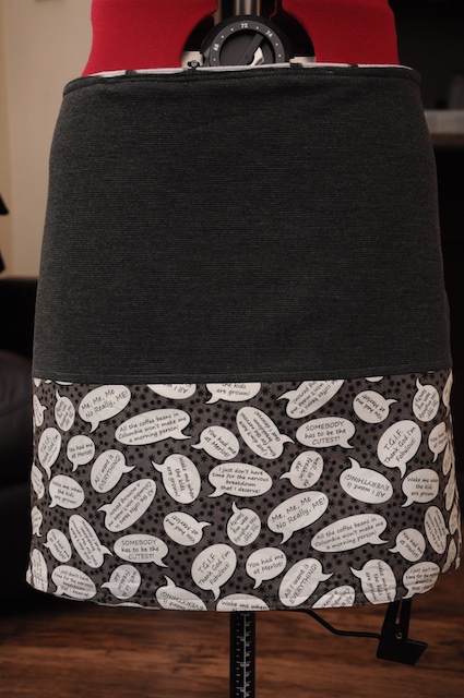 Oh that speech bubble fabric is amazing, I love it! Three great skirts and I, also, have small hips but no waist, so I agree with the no darts sentiment:)