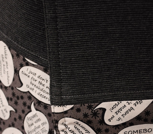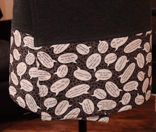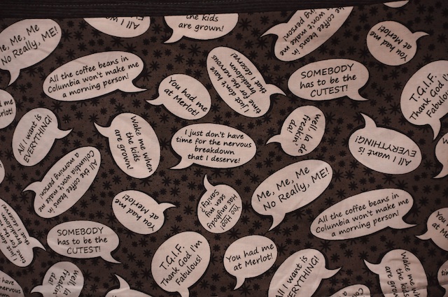I love the fabric with the speech bubbles, too funny!