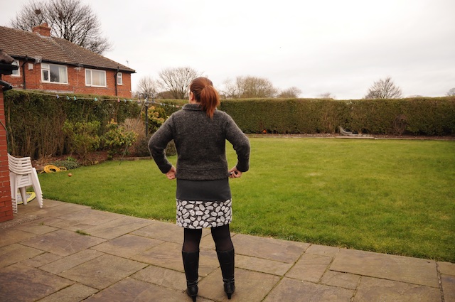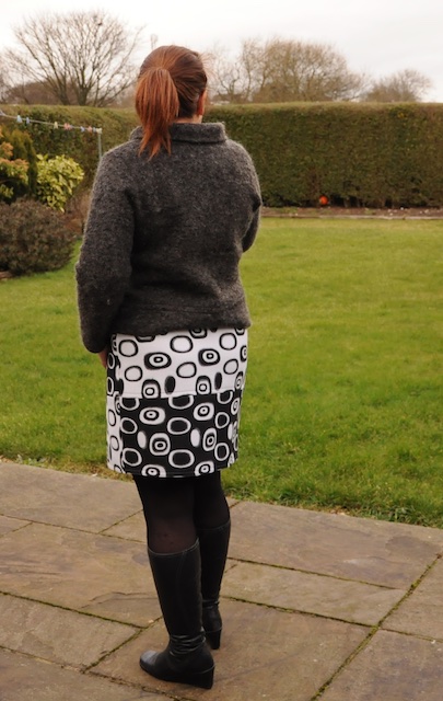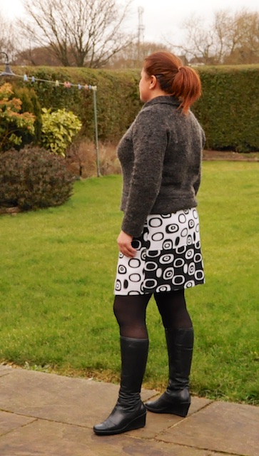 I did struggle to get photos of me in it that did the skirt justice. I’m not sure about the button placements yet, but here goes, it does look better on Gertrude than me (at the moment!)