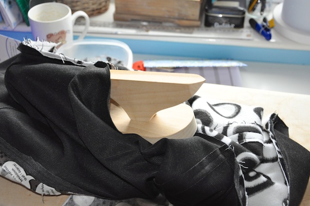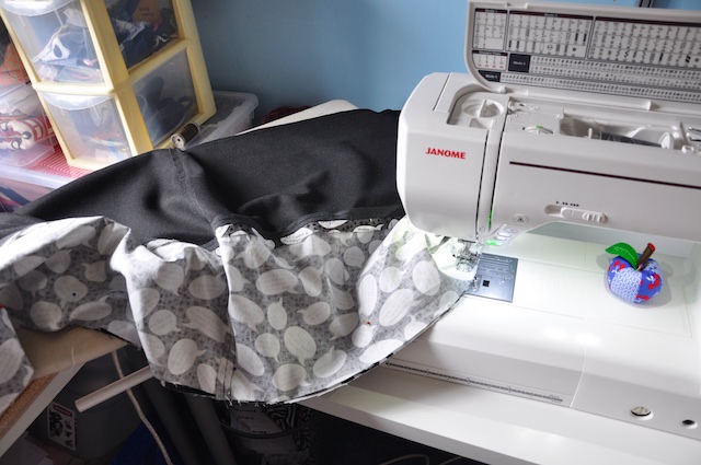 Another tip (get me!!) if your sewing is a bit heavy and you don’t have the luxury of a flat bed machine, put something alongside it that’s roughly the same height.