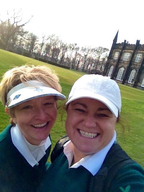 Today I played golf at Rotherham Golf club today for the Yorkshire Mid-Amatuer Team against the Yorkshire Vets.  Here’s me and Sarah after our match, smiling despite being thrashed! She played well, but if I want to secure my place in the team I need to practice more and sew less!! The team lost 3 1/2 to 1 1/2, but it was a gorgeous sunny day and for about an hour I was in shirt sleeves – first time this year!