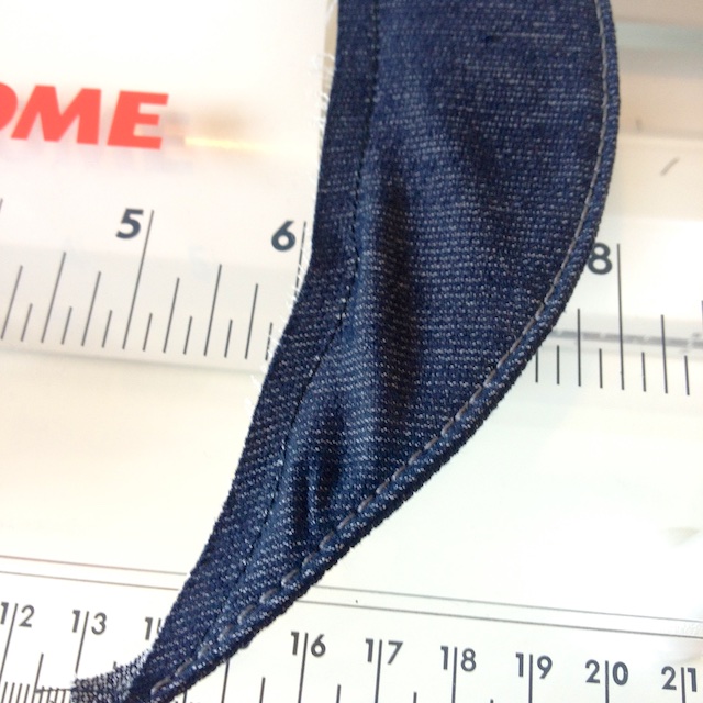 It was soon finished and I gave TBM (trainee blog manager) a fashion show.  He’d already had a sneak preview before the peak was sewn on.  I went into his bedroom wearing it and told him I’d made a denim swimming cap.  Unfortunately he believed me.  I’m only adding the next pictures as not many people I know in real life read my blog so I’ll still be able to go to the local shops without being a laughing stock!