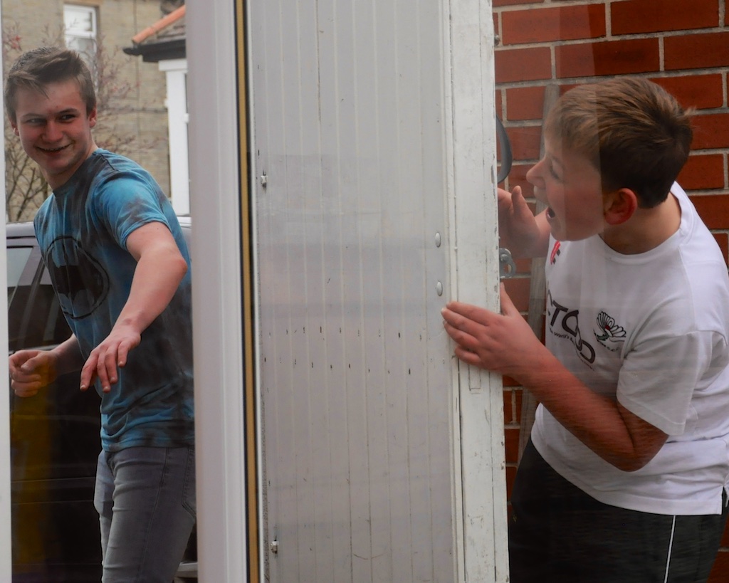 Some friends came round for lunch. They’re 2 mums I’ve met since H started playing cricket for Yorkshire 2 years ago. It was great for the lads to get together too. H loves jumping out on people and scaring them… (I need to show all 3 for you to get the effect!):