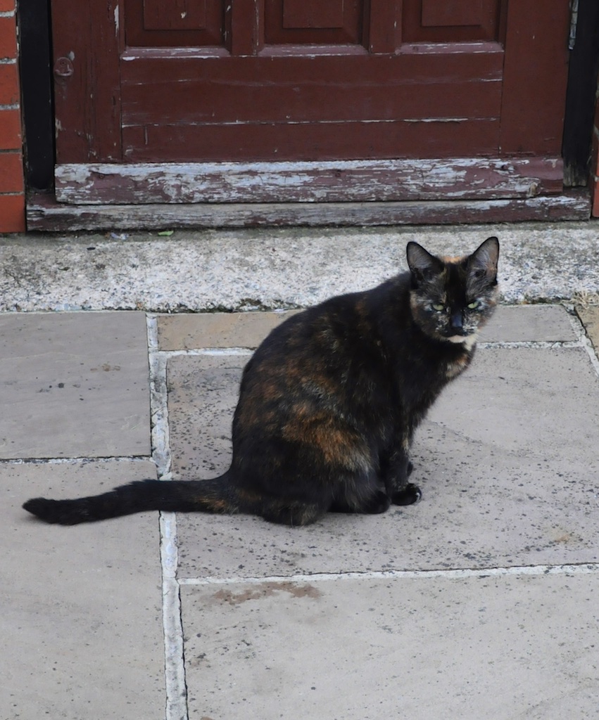 I finished it yesterday, but it was too chilly to wear. Todays a bit brighter and I’m taking my lovely mum out to lunch so will be wearing it.  Rory & I had a little photoshoot on the patio this morning.  (the scruffy looking door is the garage door not the one to the house!)