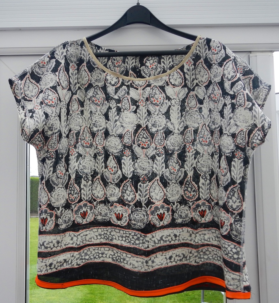 There’s not much to read about this pattern online,  so I didn’t find out until it was too late that the neck opening is too wide and shows my bra straps, and the opening at the back is totally not needed. I reduced the neck be an inch either side on the next one and still can get it on easily, and stitched up the full length of the back seam.  And I wore a strapless bra so it didn’t drive me mad.