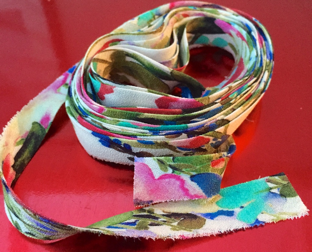 I like to use bias binding to finish my edges and hems.  I didn’t want to use the actual fabric and then not have enough to make my jumpsuit.  I found this orange and gold in my stash bought for 25p metre on the Spoolettes trip to Dewsbury.