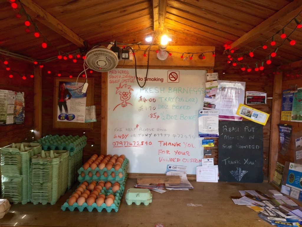 1.  We have a farm less than a 5 minute walk away that sells eggs.  There’s an honesty box and it’s open 24/7.