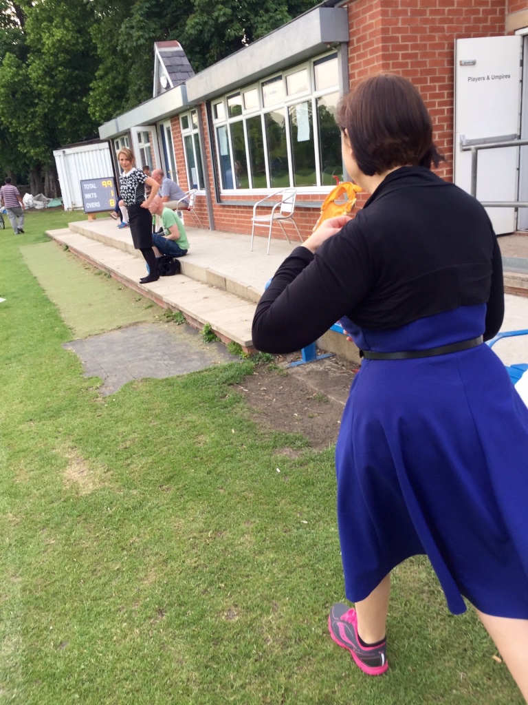 4.  Another cricket match.  Couldn’t keep up with Clare (in the blue frock), Sarah stood on the step was poised to join us for more laps. A shorter match in the evening, only 20 overs.