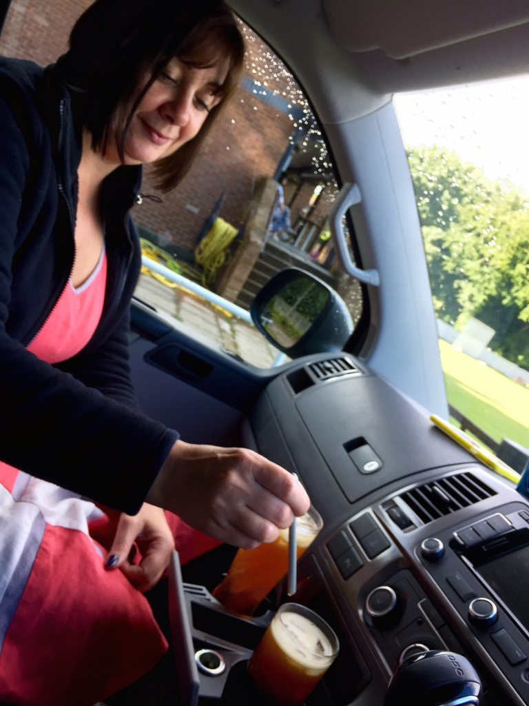 7.  A rare treat today a Cricket.  Rain stopped play, but Claire (one of the other mums) brought Pimms so we retreated to hubby’s van to drink it!  I didn’t know until it was too late that she had laced it with vodka.   Naughty friend!  By 5pm I was tipsy. By 7 I was really tipsy.  At almost 10pm I’m just about able to write this post!