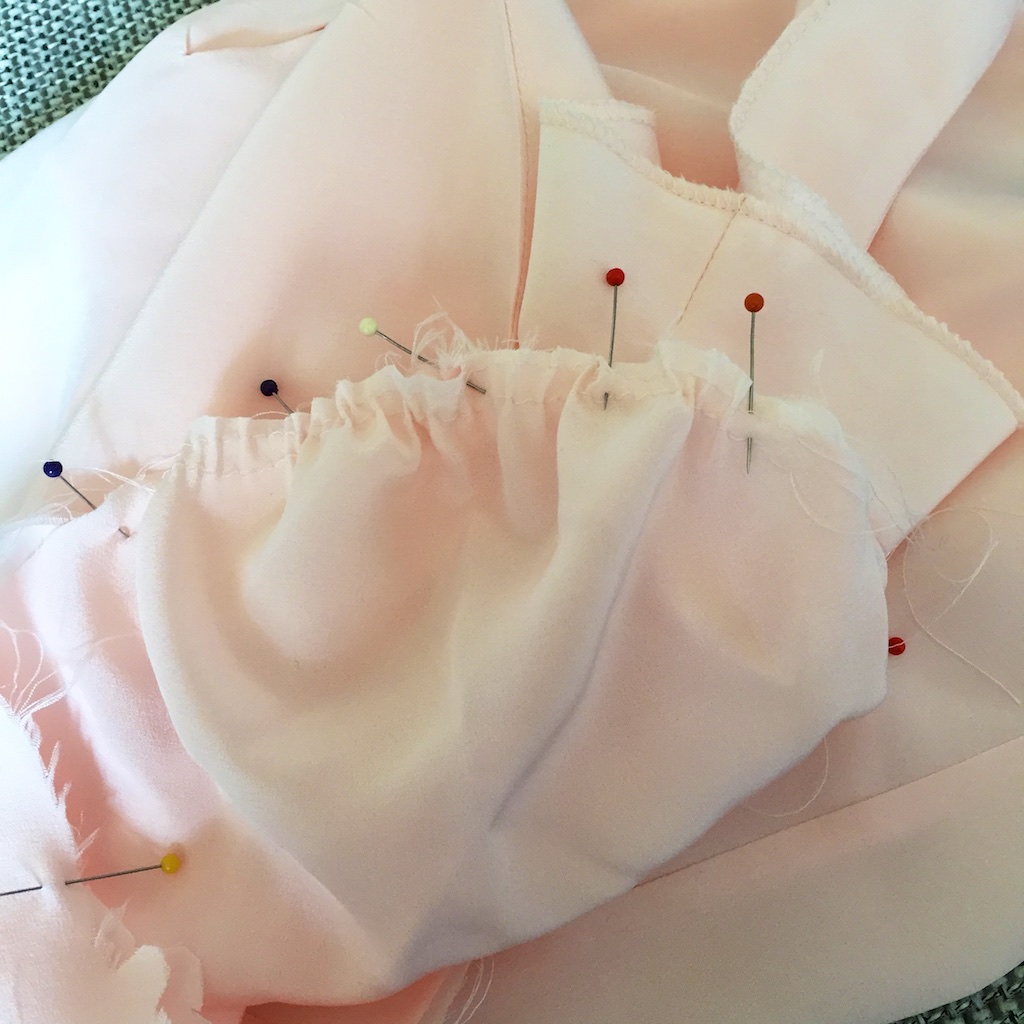 Looks like you did a great job with all the little details which is just as well as the fabric is so sheer! I always do ease stitching on the machine with the longest stitch length – with a bit of practice you could do that with silk too.
