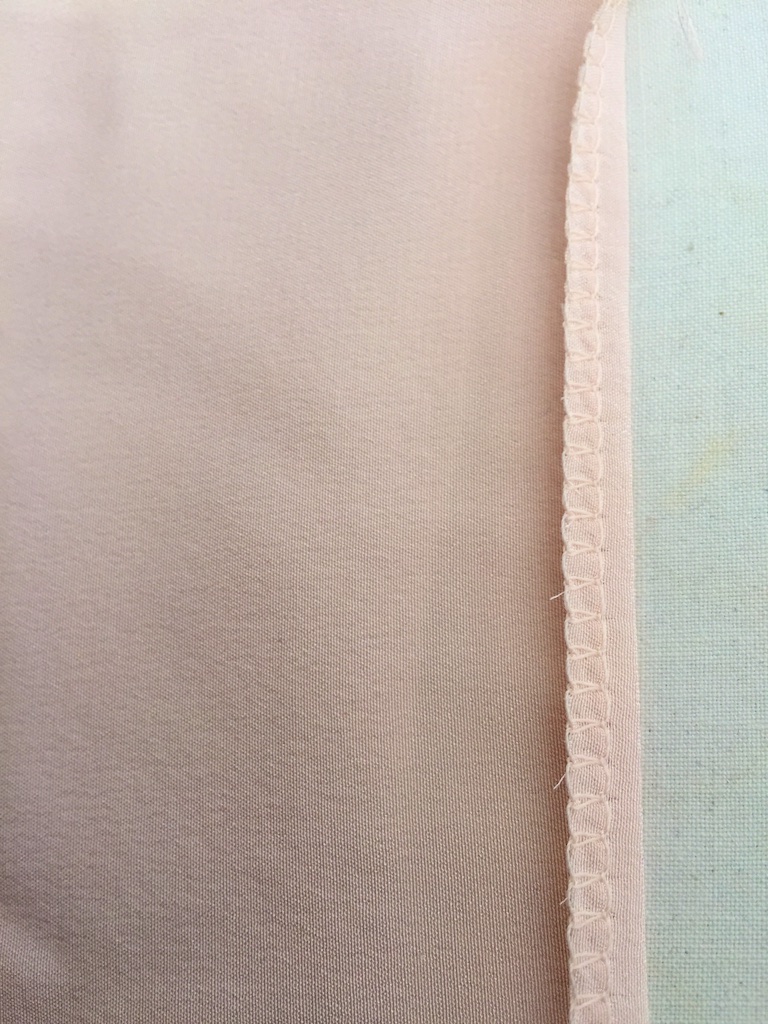 From here on things went swimmingly!  I’m no longer afraid of sewing with silk.  The hems on the bottom and on the sleeve were a doddle.  Heather said to run the overlocker round the bottom to give a neat finish and make the edge easier to work.