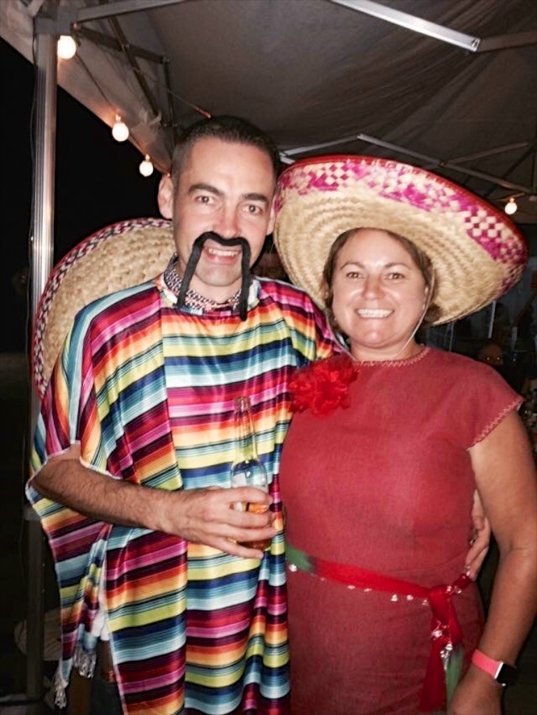 6  We went to a Mexican themed 50th birthday on Saturday night.  I intended to make Lekala 8000 in the morning then go watch cricket in the afternoon.  I ended up not surfacing from my bed until 3pm due drinking excessive amounts of pink wine the evening before (at a different 50th). It was a rush but I got it finished! Here’s me with one of hubby’s work buddies: