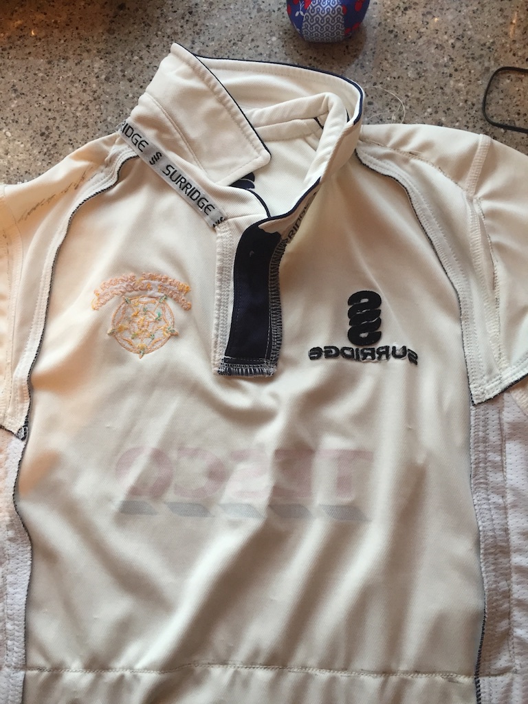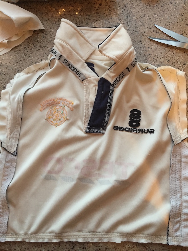 For this next one I wanted to use one of H’s Yorkshire cricket shirts as it was for the husband and wife team who’ve looked after the under 13Bs this season.