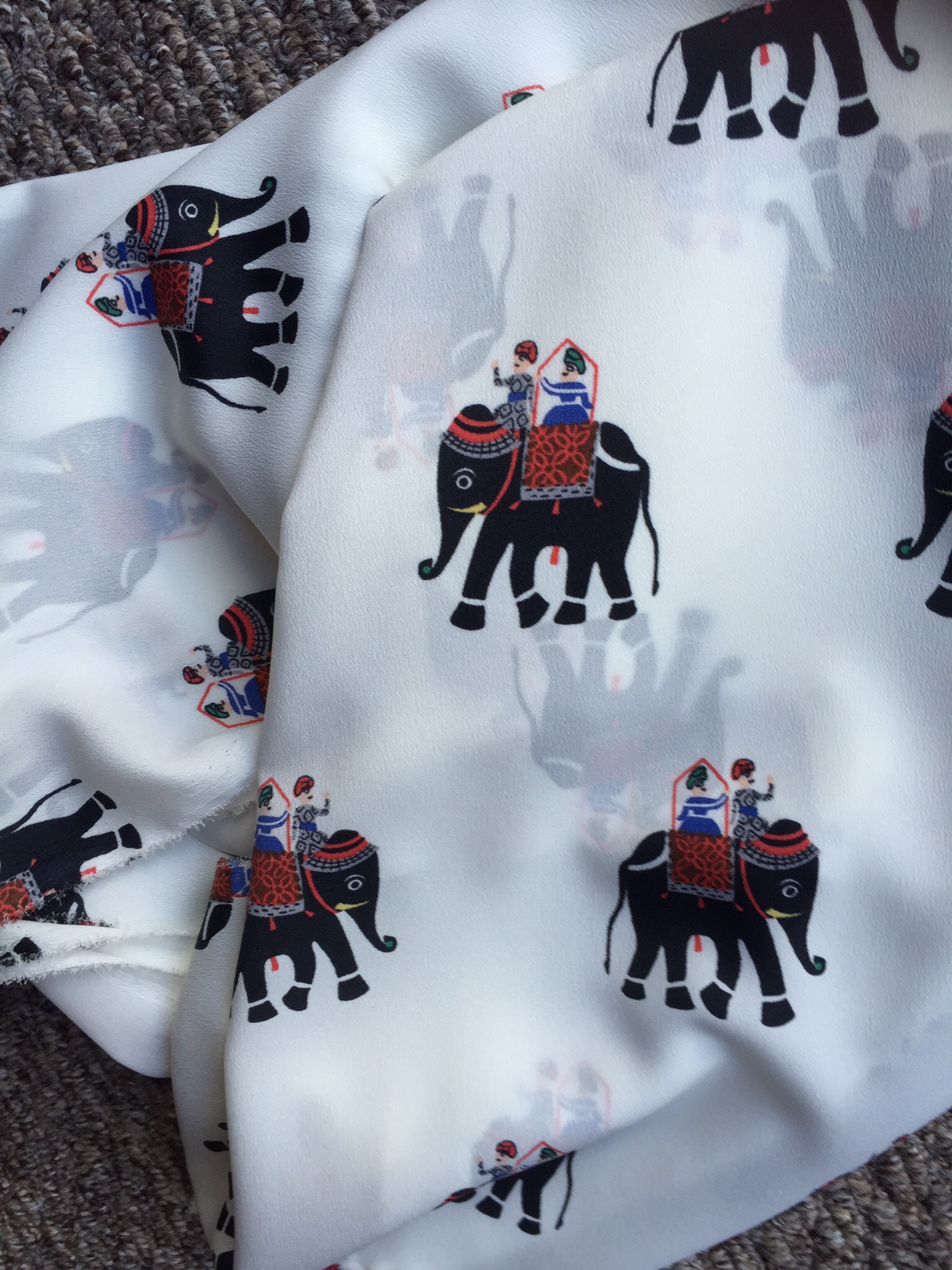 My mum bought this elephant and indian crepe, slightly sheer with a tiny amount of stretch for me a few months ago.  I’ve been umming and arrhing for ages what to make with it so thought if I pledge to make something up with it I’d have a deadline and would do it. And I did!  And I love it!