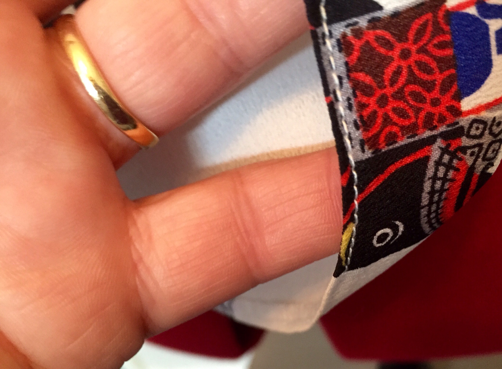 I used a couple of different finishes on the raw edges.  Firstly I used one of my sewing machine’s overlock functions as I was too lazy to change the thread on my overlocker.  Everything I’ve sewn in the last 3 months has been overlocked in bight red but I didn’t think I’d get away with it on this sheerish fabric.