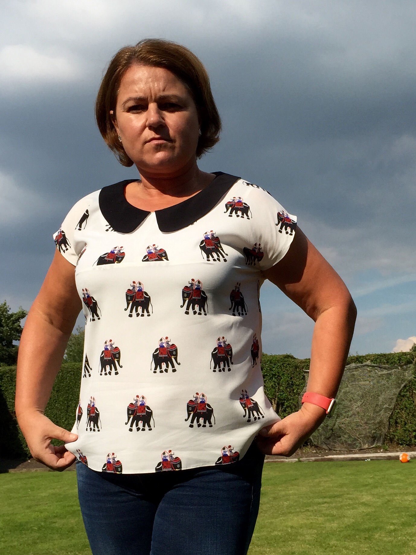 What do you think of the pattern matching?  I had a bit of a nightmare as I lost the first back piece I cut out.  Probably a good thing as I’d cut it on the fold not realising it had a centre back seam.  I was then struggling with the remaining fabric to get some sort of matching and ended up having to move the elephants up one row on one side which meant the elephants weren’t walking in the same direction.  But it also meant I have 2 elephants back legs together.  Twice. Looks a bit like the elephants have their legs crossed because they need a wee. Or is that just my vivid imagination!?