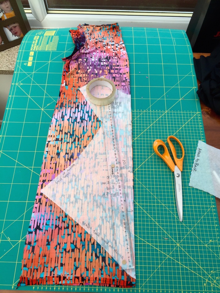 The pieces are odd shapes and at one point I didn’t think i’d be able to get the upper front and back piece out of the orange fabric.
