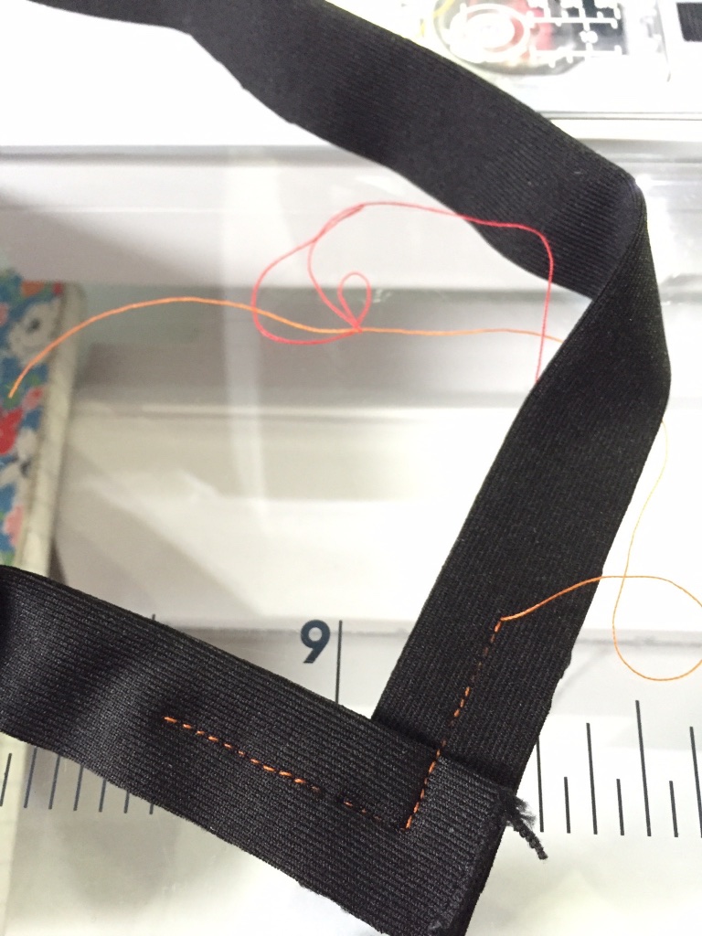 I used a red and an orange thread. Mainly because if I’d have wanted them the same I would have had to wind an extra bobbin!