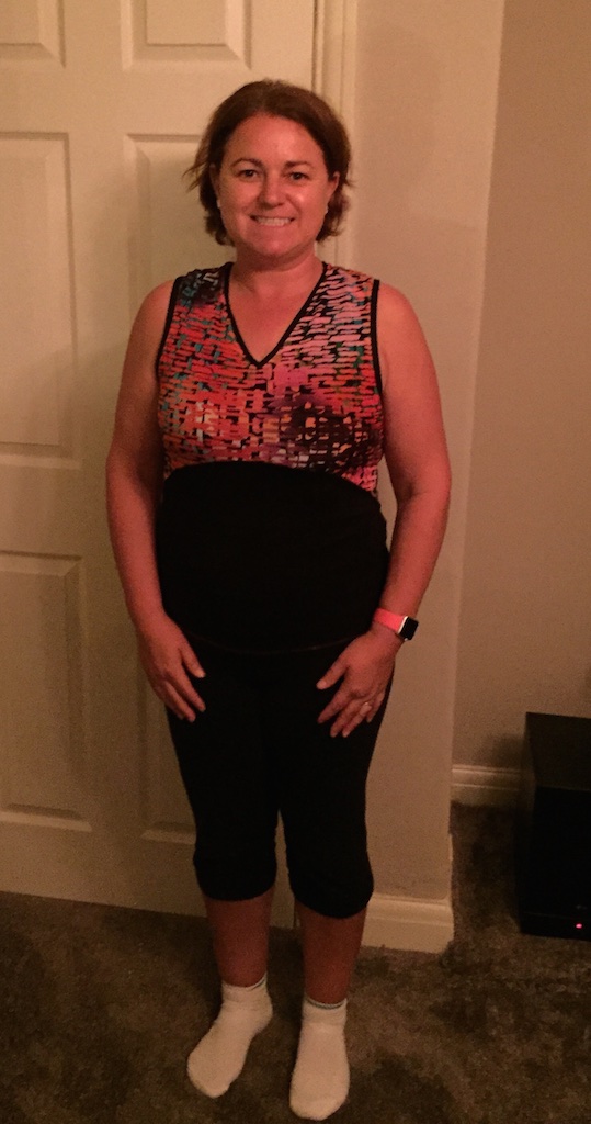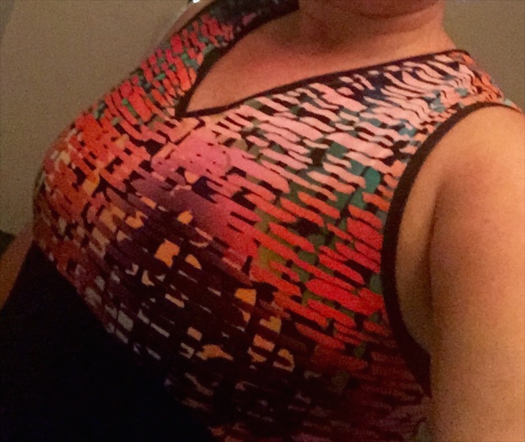 I’m super duper pleased with it!! Only thing I need now is a well fitting sports bra as my old work out tops have built in support. In the interim period before I go shopping, I’ve been wearing my old plain black top underneath.