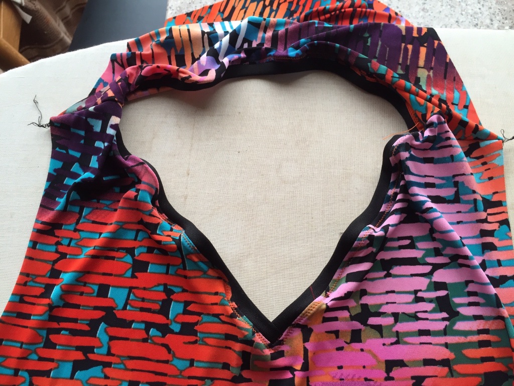 The only wobble I had, which was almost a disaster, was that I manage to stretch out the fabric when top stitching the neck binding. I had to walk away and go have a round of golf to clear the mind!