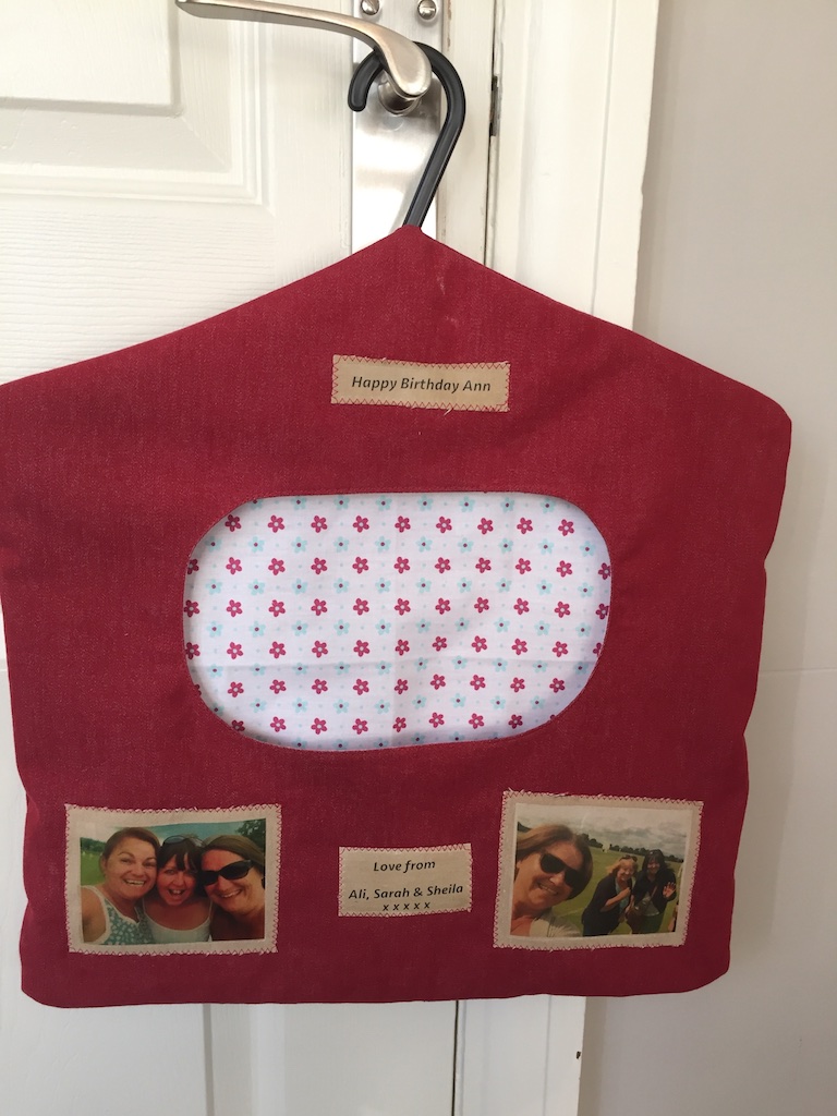 This time I transferred the photos to the sandy coloured denim fabric, then appliquéd them onto the peg bag.  I think this looks better and wish I’d have done this on the toiletries bag.