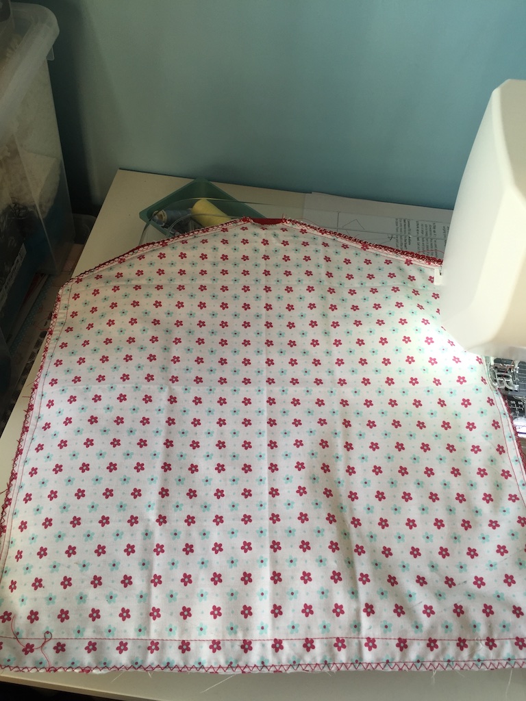 Pin a lining piece to the front piece – right sides together – and stitch together following the shape you’ve drawn.  It will be easier to stitch the curves if you use a small stitch.