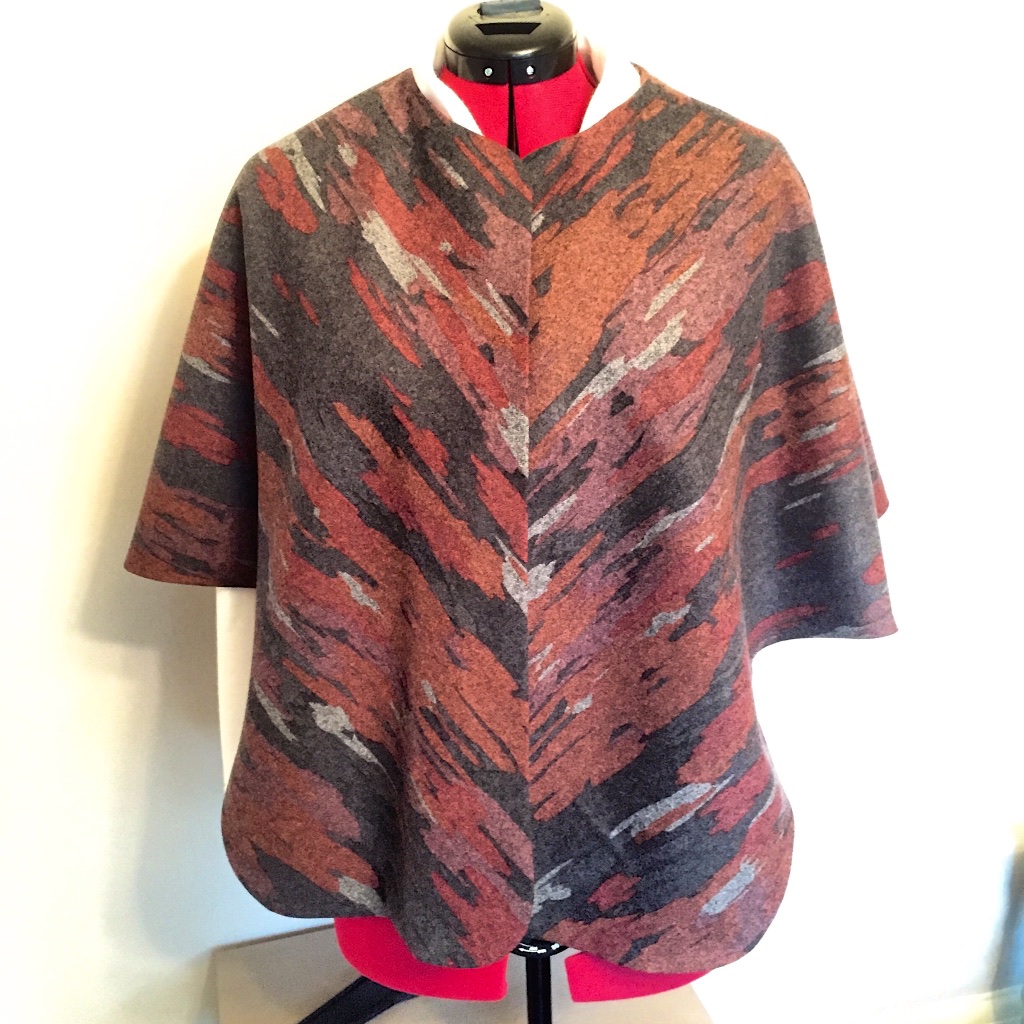Oh it looks better for being cut on the bias, the pattern stands out more than it might otherwise. What a lovely shape it is too, very modern for a cape. Is this the next Big Thing after the jumpsuit, I wonder?