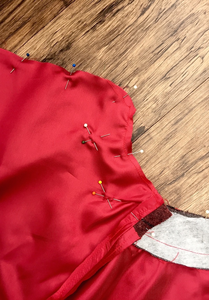 Stitching the lining to the front was a bit time consuming – be sure to use loads and loads and loads of pins, and unless you have a HUGE table you’ll need to do this on the floor – it takes up quite a bit of space.