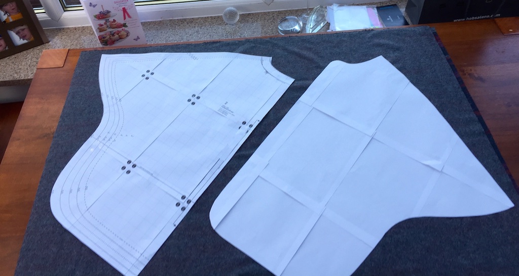 Then I thought about cutting the front pieces on the bias – and that fitted, maybe not quite at 45 degrees: