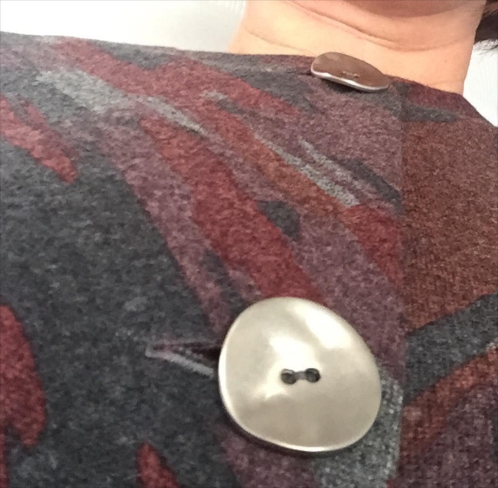 And the buttons… just love ’em! they about an inch and are shiny silvery metal.  Bit heavy but ok on the wool.