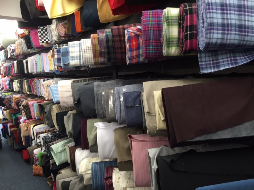 Literally around the corner from Lucky Fashions is a haberdashery/wool shop and also the pound a yard shop. It’s no longer a pound a yard, but is still very cheap. Last year we had to hang around a while as we all bought loads and it’s not a quick process all that measuring and chopping! So those who’ve done their shopping could always pop round the corner.