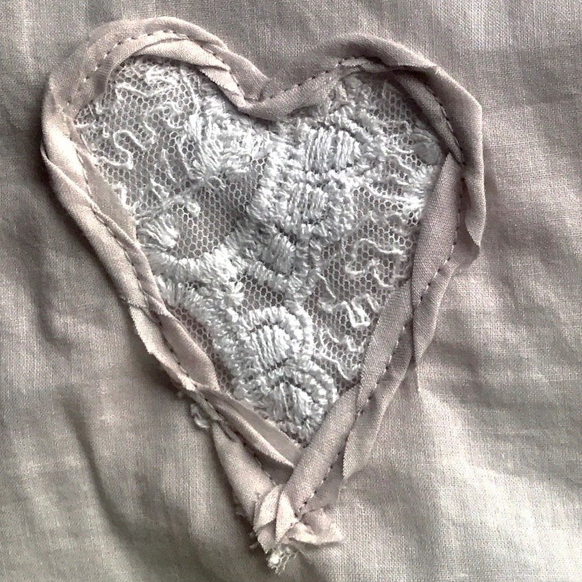 I added hearts to the front and back using an old lade RTW top, and edged in bias matching trim.
