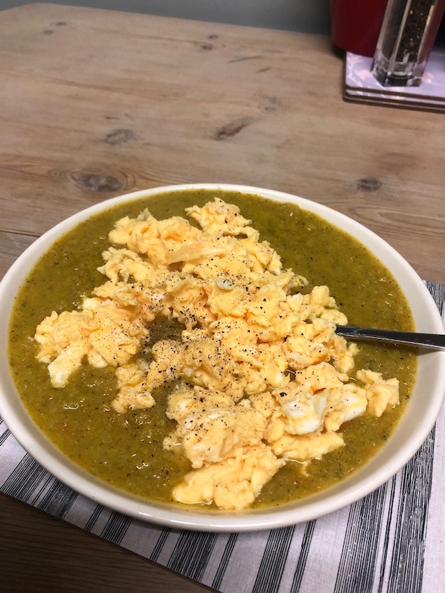 I’ve eaten some strange but healthy meals this week. Here’s home made soup with scrambled egg! Much nicer than it looks, honest!