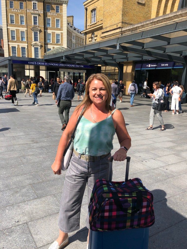 I’m here! I asked a shocked lady to take my photo outside Kings Cross station!