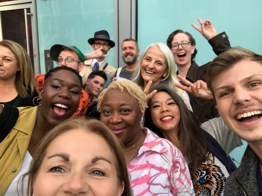 We hung about for a bit and got miked up (see I really am picking up the lingo) , had our press release photos taken, gifs and countdown photos. Then we went to the cafe for breakfast and lunch. Well, we’d already had breakfast, and it wasn’t even time for elevensies yet, but they wanted to film us having both in a nice cafe. So after having yoghurt and cereal already for breakfast I then had a danish pastry, swiftly followed by sandwiches and cookies!