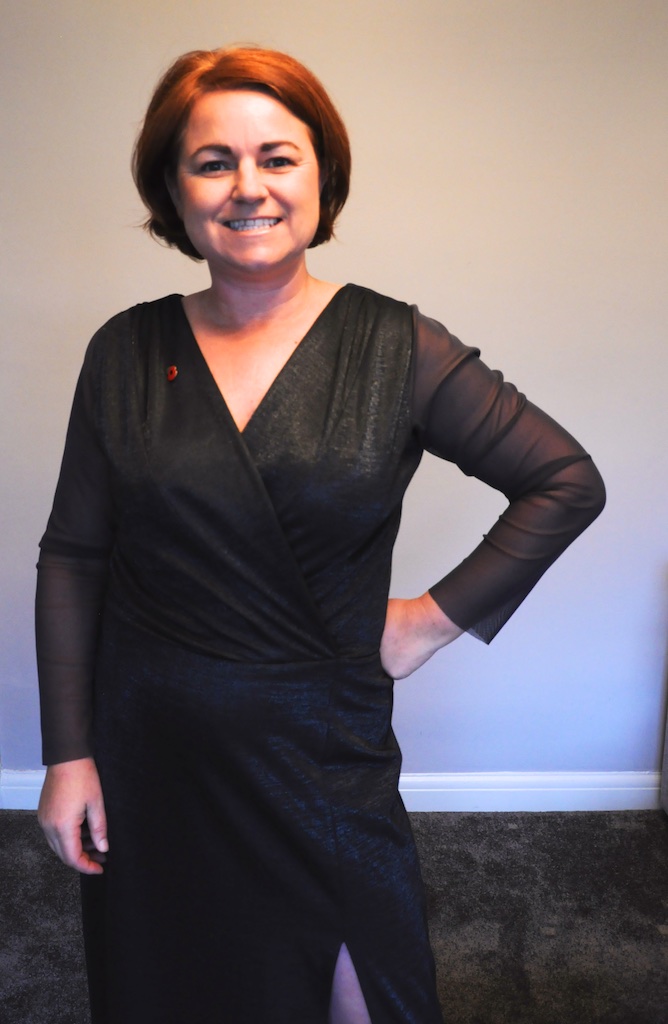 On Monday we attended the White Rose Awards at the Leeds Arena.  It is the largest celebration of tourism excellence in the UK.  The dress code was black tie.  I didn’t need any more encouragement than that to fire up my creative juices and make a new frock! I’ve already written a post about my first and second muslin of the new Wren dress pattern from Colette.  I had 5m of this sparkly silvery ponte knit from Minerva.  I originally bought 2m to make my sister a coco for her birthday but then couldn’t resist and had to buy some more for me. I intend to write a full post later about the nitty gritty of the other changes I wanted and also needed to make to the pattern so it would be perfect for my chosen fabric and the occasion! This post is all about the finished dress and the awards ceremony. All dressed up and somewhere to go!!  Hubby scrubs up well too, don’t you think?! Wahay! Look at that thigh high spit! …