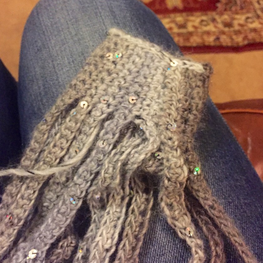 You’ll just have to humour me.  I know they have 8 tentacles and my scarf has a lot more but it still does remind me of one!   A few of you were interested in how I made Mo’s scarf in last week’s Sunday Sevens so I thought I’d buy some wool and make another, taking a few pics along the way. I’ve only been crocheting a couple of years and I think I’m somewhere between a novice and an intermediate sort of crocheter. I’m hoping this makes sense! I much prefer to crochet and knit with variegated yarn (stripy!) as I find it exciting to see what’s coming next! And with this scarf it also makes the tentacles different colours or shades depending on the subtlety of the colour change. This yarn was also different thicknesses.  I wasn’t sure how it would turn on so it was kind of an experiment.  Click HERE to see it on the Sirdar website – there’s some gorgeous colours.  2 50g balls cost me less than £6. The label recommended a …